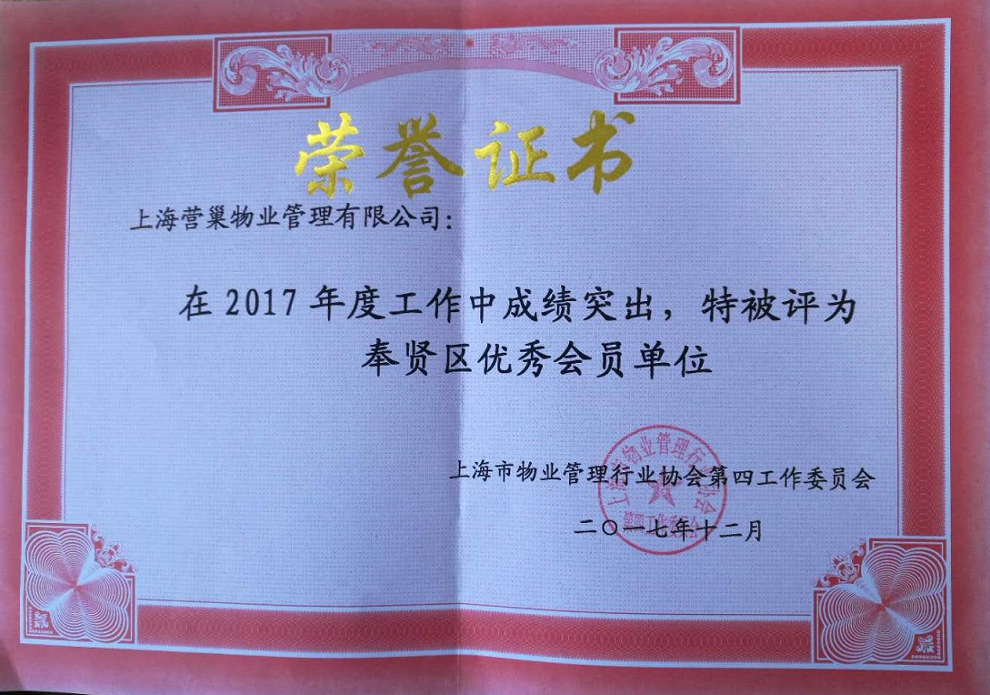2017年度奉賢區(qū)優(yōu)秀會(huì)員單位