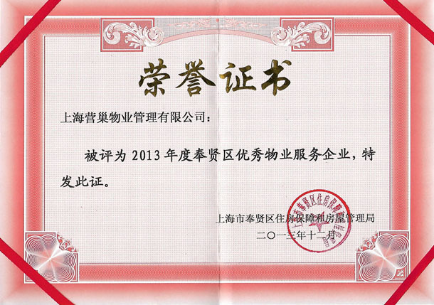2013年度奉賢區(qū)優(yōu)秀物業(yè)服務(wù)企業(yè)