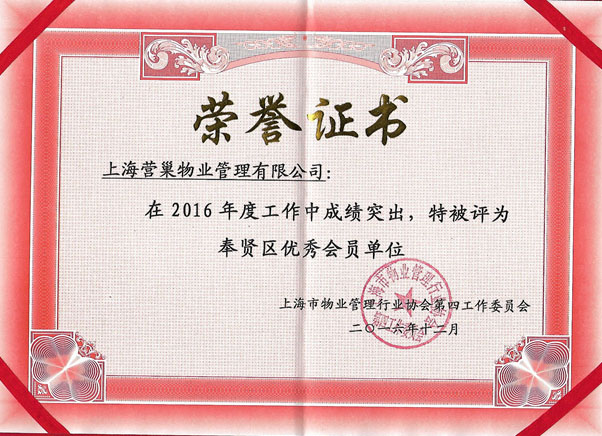 2016年度奉賢區(qū)優(yōu)秀物業(yè)服務(wù)企業(yè)