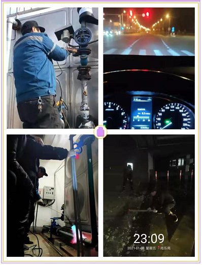 雖然防寒防凍工作部署充分周全,可還是難以完全抵御住這次的“霸王”寒潮襲擊。根據(jù)不完全統(tǒng)計(jì)上海市短短幾日內(nèi)單962121物業(yè)報(bào)修平臺(tái)就接報(bào)有2.15萬(wàn)居民家中,受寒潮影響發(fā)生凍管、爆管、漏水,全市物業(yè)人紛紛頂著寒風(fēng)奮戰(zhàn)在第一線(xiàn)。營(yíng)巢物業(yè)人亦是如此,早上6點(diǎn)九華麗苑一處屋頂水箱進(jìn)水管閥門(mén)開(kāi)裂漏水,接報(bào)后甘師傅背上工具包拿起新閥門(mén)急忙奔赴現(xiàn)場(chǎng),屋頂陣陣寒風(fēng)撲面而來(lái),吹得人直打哆嗦,但他卻沒(méi)有絲毫遲疑,迅速熟練的完成新舊水閥更換,及時(shí)恢復(fù)了整幢樓的用水供應(yīng)。上午9點(diǎn),應(yīng)急小組李師傅、張師傅正聚精會(huì)神的使用烘槍為水箱出水管化凍,及時(shí)化解了整棟居民樓無(wú)水可用的困局。晚上21點(diǎn)應(yīng)急小組成員小夏回到值班室,吃上放置許久已經(jīng)微涼的晚飯。夜里23點(diǎn)左右尚樂(lè)苑值班人員,剛剛處理好地下車(chē)庫(kù)口爆裂的消防噴淋頭,一回頭地上的積水已變成了一大片堅(jiān)硬的冰面。幾位保安師傅急忙敲鏟清除,以防業(yè)主出行時(shí)發(fā)生事故。凌晨2點(diǎn)完成當(dāng)天最后一項(xiàng)急修任務(wù)的沈師傅,懷揣著一顆踏實(shí)的心,啟程踏上了回家的路。