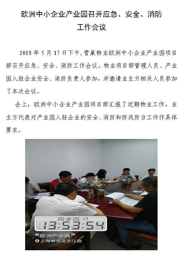 歐洲中小企業(yè)產(chǎn)業(yè)園召開應(yīng)急、安全、消防工作會議